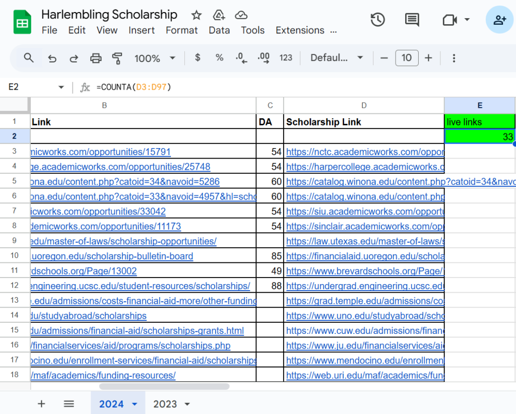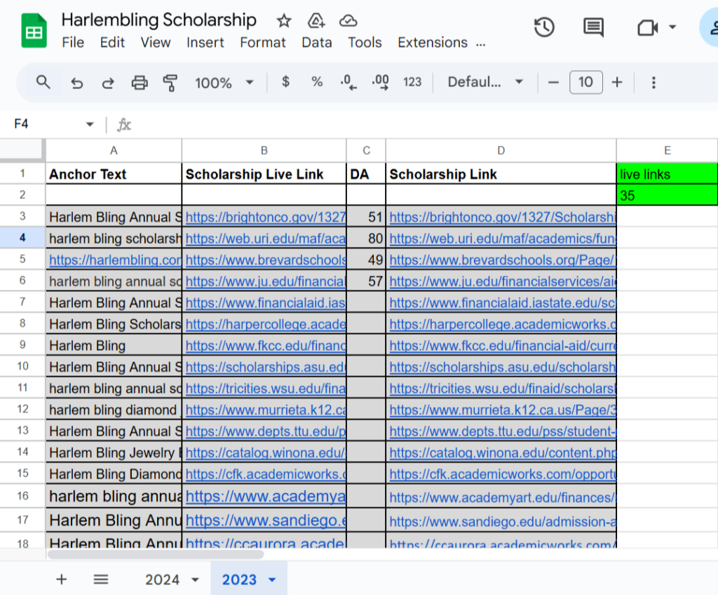 Through two scholarship promotions over two years, we successfully secured 35 EDU backlinks in 2023 and 33 EDU backlinks in 2024, totaling 68 high-authority links from .edu domains.