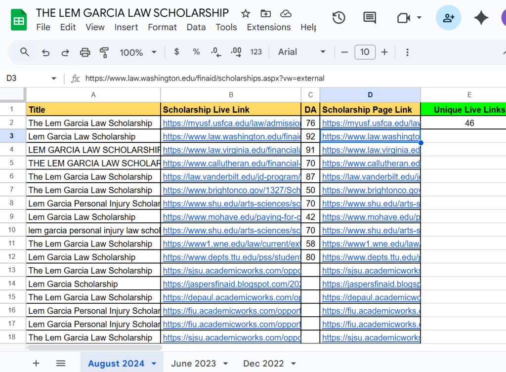 We recently completed a highly successful EDU link-building campaign for a personal injury attorney based in California. The campaign centered around a recurring $1,000 scholarship offered every six months, targeting students across the U.S.