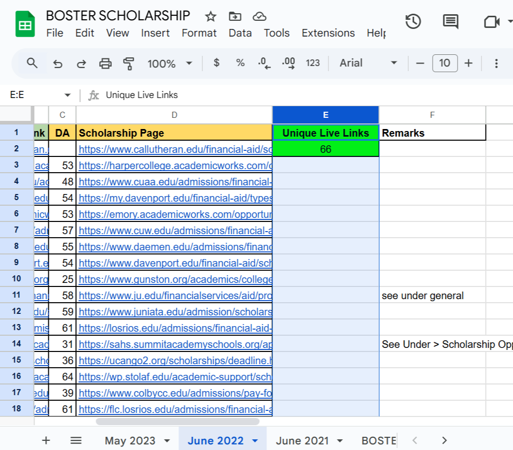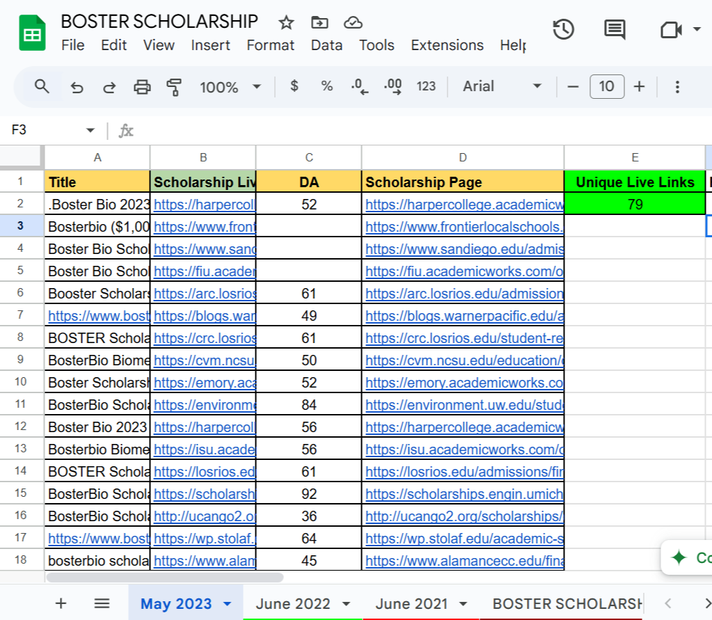Over the course of five scholarship campaigns (from May 2020 to May 2023), we conducted outreach to 1,500 U.S. schools accepting private scholarships and secured a total of 364 EDU backlinks: